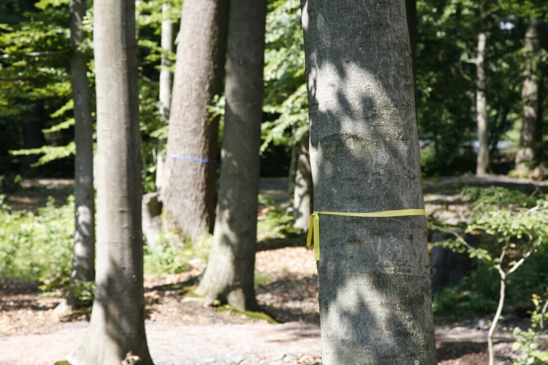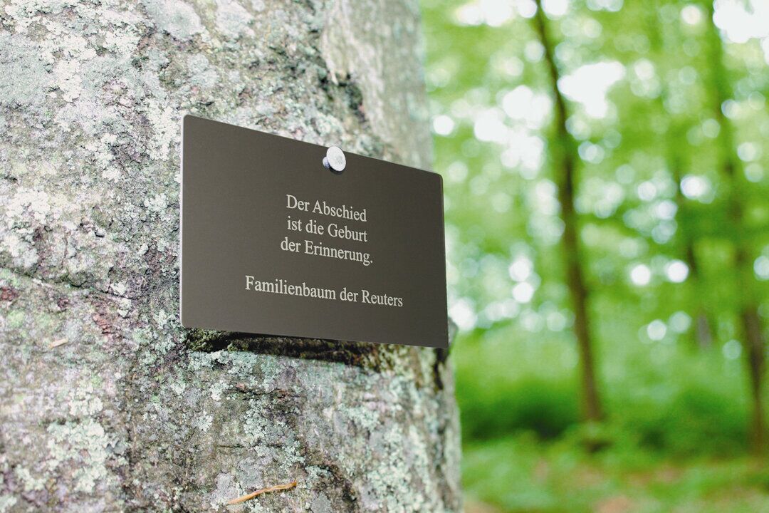 Jeder FriedWald-Baum kann bis zu zehn Personen als letzte Ruhestätte dienen. Freie Bäume sind mit farbigen Bändern gekennzeichnet, die die verschiedenen Baumgrabarten anzeigen. Mit kleinen Namenstafeln werden diese Bäume zu persönlichen Orten der Erinnerung.